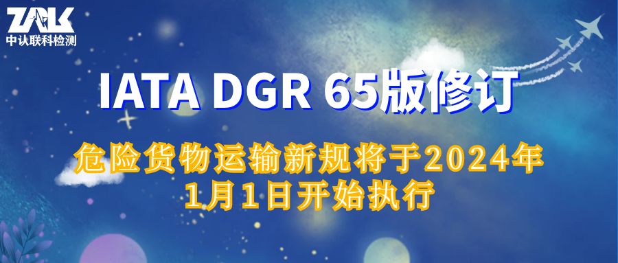 國際航空運輸協會(IATA)發布了危險貨物規則(DGR)的第65修訂版,該版本將于2024年1月1日起正式生效。